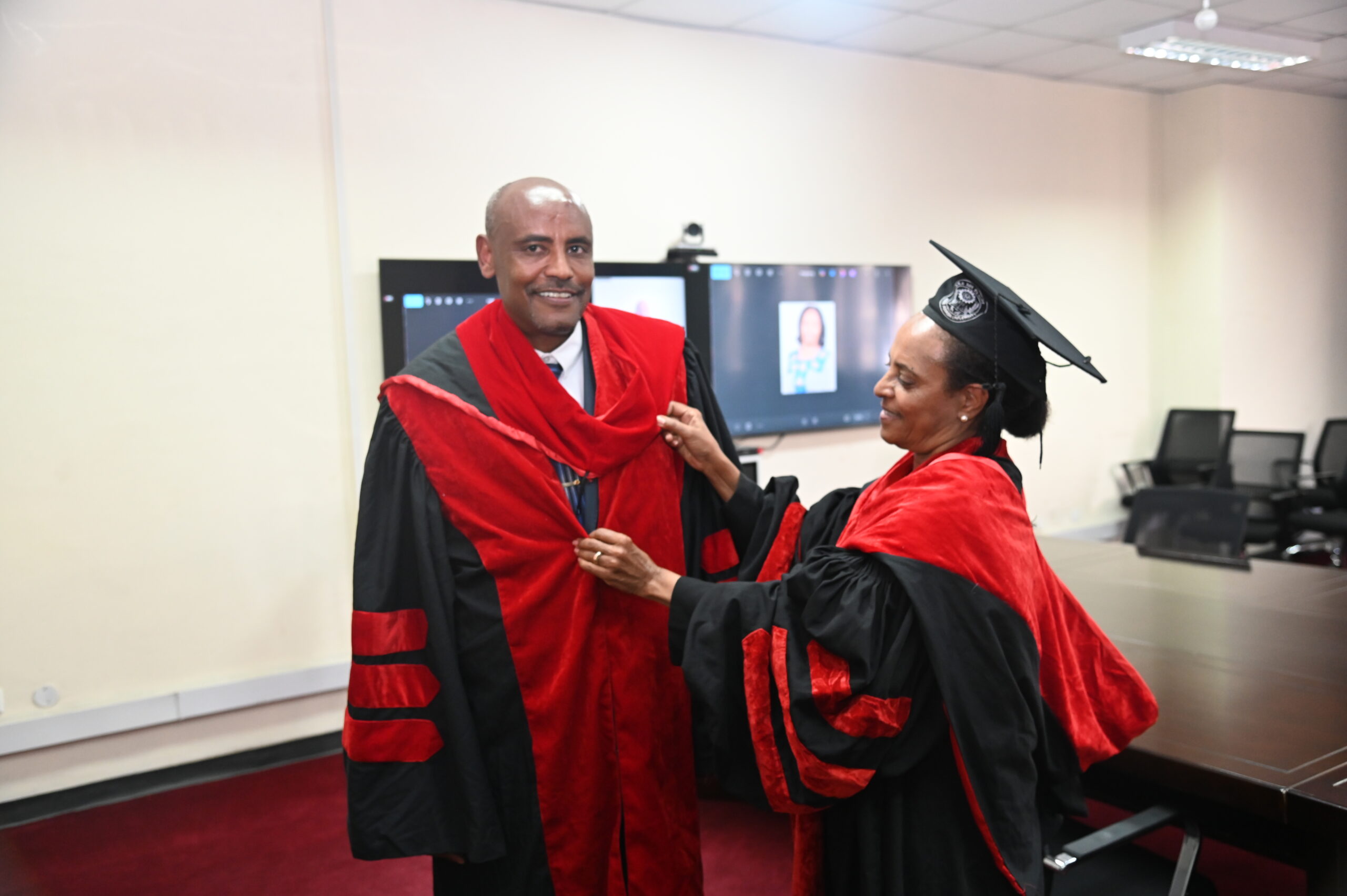 The research was supervised by Prof. Argaw Ambelu (Addis Ababa University), with co-supervision by Dr. Muluken Azega (Bahir Dar University), Prof. Yalemtsehay Mekonnen, and Dr. Taddesse Kassahaun (both from Addis Ababa University). The defense session was chaired by Dr. Beteley Tekola ( Addis Ababa University) and examined by Dr. Adey Feleke (internal examiner, Addis Ababa University) and Prof. Muluemebet Abera (external examiner, Jimma University).